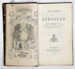 Les gaietés de Béranger - recueil des meilleures chansons érotiques et satiriques de ce poète, non recueillies, en partie, dans ses œuvres prétendues complètes - Villafanca - 1875 - imprimé par les Presses de la société des Bibliophiles Cosmopolites - Exemplaire n°144/300 sur papier vélin anglais - 156p. - 10,5 x 18 cm -