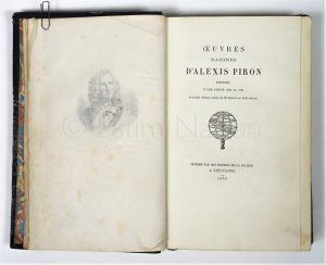 Œuvres badines d'Alexis PIRON - précédées d'une notice sur sa vie - nouvelle édition, ornées de 20 figures en taille-douce - Imprimé par les Presses de la Société à Neuchatel - 1872 - 218 p.- 14 x 20,5 cm - exemplaire n°34 sur papier vergé - tiré à 40 ex. - couverture cuir