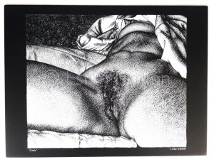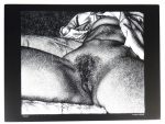 Dessin original érotique rendant hommage au célèbre tableau de G. COURBET " L'Origine du Monde".