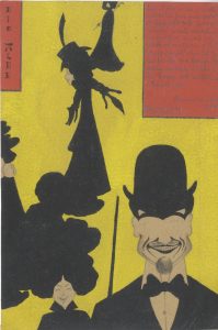 19 acquerelli su cartoncini. mm 140x90. In gran parte affrancati e spediti da Firenze alla “Signorina Nuti, Palazzo Pitti, Boboli, Firenze”. Gustosissima serie di cartoline manoscritte e illustrate con gusto caricaturale e squisito segno liberty, riecheggiante lo stile modernista degli illustratori tedeschi di “Jugend” e francesi di “Le rire”. Non è svelato il vero nome dell'eccentrico autore di queste missive umoristiche e immaginiamo sentimentali, quasi sicuramente fiorentino, che si cela sotto lo pseudonimo di “Diomede”.