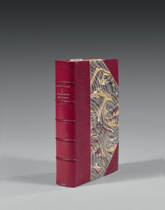 Dos à nerfs et coins de maroquin rouge, plats de papier marbré, tranche supérieure dorée, non rogné, double couverture et dos conservés.