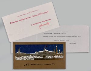 “Cher Camarade Mitterrand, veuillez accepter mes félicitations à l’occasion de l’Année 1978. Avec les meilleurs vœux. L. Brejnev”.