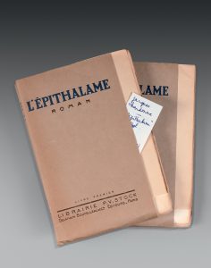 “Jacques Chardonne, L’Épithalame, 2 vol. Don (Pierre Bergé) 6 septbre 1988”.