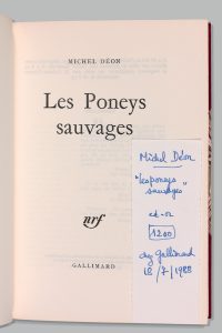 “Michel Déon, Les Poneys sauvages, ed. or. 1200 (fr.) chez Gallimard, 18/7/1988”.