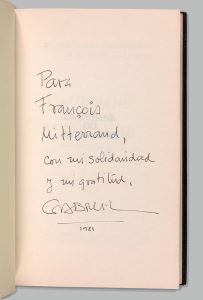 Para François Mitterrand, con mi solidaridad y mi gratitud, Gab Marquez, 1981.