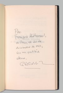 Para François Mitterrand, cordialmente, Gab Marquez, 1981.