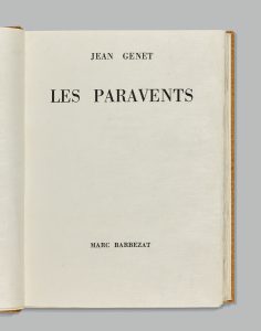 GENET, Jean. Les Paravents. Décines, Marc Babezat, 1961.