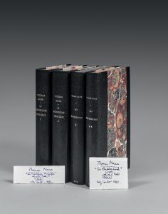 “Thomas Mann, Les Buddenbrook (2 vol.) ed. or. (trad.) 3.000 (fr.) chez Coulet, 1992”.