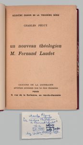 PÉGUY, Charles. Un Nouveau Théologien : M Fernand Laudet. Paris, Les Cahiers de la Quinzaine, 1911.