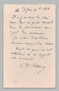 PÉTAIN, Philippe, Maréchal de France. L.A.S. à un destinataire inconnu. Île d’Yeu, 16 décembre 1948.