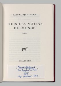 “Pascal Quignard, Tous les matins du monde, ed. or. 850 (fr.) chez Gallimard, 1991”.