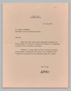 “merci pour votre lettre aussi chaleureuse qu’amicale qui m’est parvenue à la suite de ma décision de renoncer à la candidature au poste de Chef du prochain gouvernement.