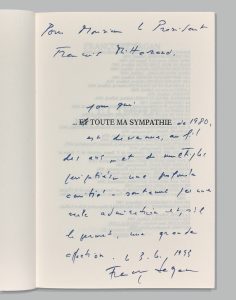 ENVOI DE FRANÇOISE SAGAN À FRANÇOIS MITTERRAND.