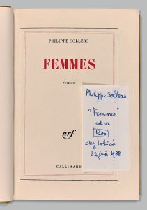 “Philippe Sollers, Femmes, ed. or. 1200 (fr.) chez Loliée, 22 juin 1988”.