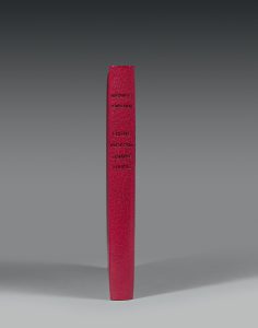 Maroquin rouge, décor mosaïqué d’un motif de Rorschach en noir sur le plat supérieur, dos long titré à l’œser noir, couverture et dos conservés, non rogné.