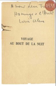 Louis-Ferdinand CÉLINE (1894-1961). P.A.S. ; sur 1 page in-12 (petits défauts et trace de rouille). Dédicace sur une page de faux-titre détachée de Voyage au bout de la nuit (1932) : « à Monsieur Léon Treich  bh Hommage de l’Auteur...