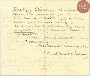inouïs, dont la beauté m’apporte un peu de joie »... Elle ne sait plus si elle part… « une photo de moi, maintenant, est-ce bien nécessaire ? »… On joint une L.A.S. de Maurice Druon à D.E. Inghelbrecht, Versailles 18 janvier 1954, remerciant de l’envoi de son Claude Debussy.
