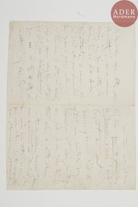 trop souffrante pour avoir la force de réfuter ta lettre qui est cruelle injuste, sans foi, et sans tendresse »… Elle s’oblige à jouer à cause de l’état de santé de ses filles Caroline et Louise : « juge de mon chagrin et dis s’il n’est pas bien douloureux pour moi de lire ta lettre de ce matin ? D’y lire des suppositions aussi grossières d’y lire : que tu ferais bien de renoncer à moi ! Ah ! Luguet c’est mal ! Renonces-y donc s’il te faut une maîtresse gaie heureuse et bien portante car hélas je ne suis rien de tout cela à cette heure. – Tu ne m’écriras sûrement plus mais cependant ne faut-il pas au moins une lettre encore qui me dise si tu veux être la première personne qui me recevra à Paris ? […] Ton succès je n’en doutais pas et j’en suis heureuse ! »… On joint un fac-similé ancien de l’émouvante lettre à sa fille Caroline Luguet, [Caen 15 mai 1849], cinq jours avant sa mort. Ancienne collection Jean Darnel (20-21 octobre 2007, n° 38).