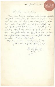 demain puisque cela vous est agréable et possible : vous savez que toutes les occasions de vous voir me sont très chères ; vous n’aurez donc qu’à me tenir averti chaque fois que vous pourrez disposer de quelques instants pour les passer avec moi. Il suffit que vous le fassiez assez à tems pour que je puisse seulement vous dire par la poste un oui, ou un non qui serait tout à fait contre mon cœur, et me serait imposé par quelque obligation indéclinable »… On joint une L.A.S. de Joseph Napoléon Ney, prince de la Moskowa, à Camille Stamaty, Paris 17 juillet [1852 ?], en faveur de Gustave Canoby.