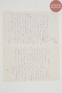 une soirée. « Mais je crois que votre monde très intelligent et très vivant s’amuse bien mieux sans notre concours, à moins d’un talent comme celui de Coquelin […] Je garde mon opinion et pense que la musique et les vers c’est bon pour les salons……embêtants en dehors bien entendu des gens fanatiques ou du métier »… 3 septembre 1881, demande d’une place dans une école gratuite pour le fils de sa femme de chambre… 11 novembre 1891, à Alphonse Daudet : on lui a dit « que vous faites un rôle pour moi dans la pièce à laquelle vous travaillez en ce moment. Je tiens à vous dire merci ! Si le travail doit apporter un allègement à mes peines, je serai heureuse de vous le devoir »… Rendez-vous, remerciements, répétitions, demandes de loges ou de places, recommandations, etc. On joint 2 cartes de visite autographes, la copie d’un contrat avec le théâtre du Vaudeville pour Fanny Lear de Meilhac et Halévy, 2 photographies et une coupure de presse.
