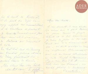 Eugène YSAÿE (1858-1931) violoniste et compositeur. L.A.S., [1891], à un « cher Maître » ; 4 pages in-8. Il lui adresse, comme le fait Radoux, un jeune homme de grand talent et de bel avenir, Kühn : « Je viens de jouer avec lui une...