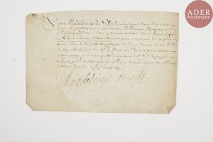 Dupes. P.S. « Magdeleine de Silly », 31 décembre 1627 ; vélin obl. in-4. « Madelaine de Silly dame du Fargis dame datour de la Royne » reçoit de M. d’Argouges « Tresorier general des maison et finances de ladite dame Royne la somme de six cens livres a nous ordonnee pour nos gaiges de la presente annee a cause de nostre dite charge de dame d’atour de Sa Maté »...