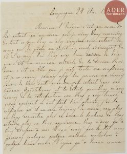 MARIE-AMÉLIE. L.A.S., Compiègne 24 septembre 1841, à l’évêque d’Évreux [Nicolas-Théodore Olivier] ; 1 page et demie in-4 à son chiffre couronné, enveloppe à son chiffre. Après l’attentat de Quénisset contre le duc d’Aumale [13...