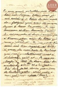 de Neipperg (1 p. in-8). Neipperg commence la lettre : « Nous avons eu hier le plus beau tems du monde pour notre excursion au lac, à la chapelle de glace, et aux mines de Berchtesgaden, à peine arrivés ici la pluie a commencé. Le petit […] se conduit bien – mais a une telle vivacité, que le pauvre Moriggi [médecin personnel de Marie-Louise] ne peut pas dormir en voiture »… Marie-Louise prend la plume : « Je vous aurais volontiers écrit à tous hier une longue lettre mais je suis arrivée à 11 heures du soir morte de fatigue après avoir été en course depuis 8 heures du matin. Je suis heureuse et bien heureuse d’avoir de vos nouvelles et désire arriver vite à Vienne pour avoir les lettres qui nous y attendent. Je me porte bien mais suis bien inquiète et triste à cause de mon oncle le cardinal qui sera probablement mort à l’heure qu’il est. Je vous embrasse tous les deux [ses premiers enfants Albertine et Guillaume]. Bien des amitiés à Mme et M. Zode [leur précepteur]. J’ai de jolies choses pour vous de Berchtesgaden. Adieu, pensez à moi qui vous aime tant. »