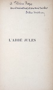 MIRBEAU (Octave). L’Abbé Jules. Paris, Paul Ollendorff, 1888. In-12, demi-maroquin rouge avec coins, filet doré, dos à nerfs portant le titre doré, tête dorée, non rogné, couverture et dos (E. & A. Maylander).
