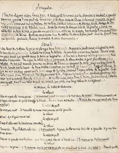 Manuscrit comportant beaucoup de ratures, corrections, ajouts par rapport à la version publiée dans Farces et Moralités (1904). Les sept dernières brèves répliques manquent dans le manuscrit.