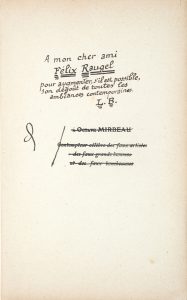 La première dédicace à Mirbeau, faussement élogieuse, était en réalité ironique et se présentait comme une attaque contre le dreyfusard ;