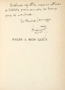 TENDRE ENVOI AUTOGRAPHE DE L’AUTEUR À SON ÉPOUSE LOUISE : Quelques vignettes, croquis, sottises et bibelots pour amuser les beaux yeux de Loulouse...