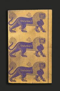 ► SUPERBE COUVERTURE IMPRIMÉE EN MAUVE SUR FOND OR ET ORNÉE DE MOTIFS EMPRUNTÉS À L’ART BYZANTIN.