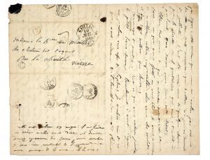 Nota : Les chemises dans lesquelles sont placées ces lettres portent les numéros en chiffres romains qui sont ceux des lettres publiées par Emile Barthès « EUGENIE DE GUERIN Lettres à sa famille et à divers, 2 vol. Albi, 1962.