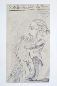• A. Cazals (184 x 102 mm), portrait charge de Catulle Mendès pour le journal La Halle aux charges.