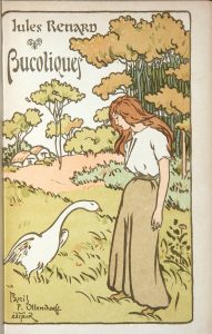 RENARD (Jules). Bucoliques. Paris, Paul Ollendorff, 1898. In-12, veau fauve, composition florale à froid sur les plats, dos à quatre gros nerfs soulignés de filets à froid et orné de deux gros fleurons, non rogné, couverture et dos (René...