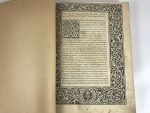 Premier feuillet illustré d'une superbe bordure d'encadrement ornée d'arabesques blanches sur fonds noir gravée sur bois, bordure demeurée comme un modèle de décoration typographique pour remplacer les miniatures de l'époque.