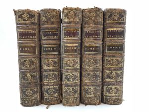 VALMONT DE BOMARE ─ Dictionnaire raisonné, universel d'Histoire Naturelle, contenant l'histoire des animaux, des végétaux et des minéraux... 5 vol. in-12 reliés plein veau époque, dos à nerfs à caissons fleuris, tranches rouges. Paris...