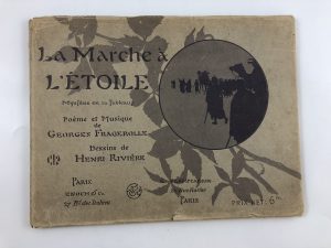 FRAGEROLLE (Georges) / RIVIERE (Henri) - La marche à l'étoile. Mystère en 10 tableaux. Poème et musique de G. Fragerolle et 17 dessins de H. Rivière. 1 vol. in-4 oblong, cartonnage éditeur sous jaquette (salie et en partie déchirée,...