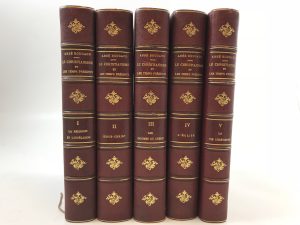 BOUGAUD (Abbé Em.) - Le christianisme et les temps présents. 5 vol. gd in-8 reliés ½ chagrin bordeaux à coins, dos à nerfs fleuronné, tête dorée. Paris Poussielgue 1877-1884. Rousseurs infimes sinon très bel ex.