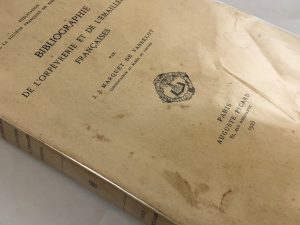 [ORFEVRERIE / EMAILLERIE] MARQUET de VASSELOT (J.-J.) Bibliographie de l'orfèvrerie et de l'émaillerie française. 1 vol. gd in-8 broché. Paris Picard 1925. Léger accroc sur la première de couverture, sinon bel ex.