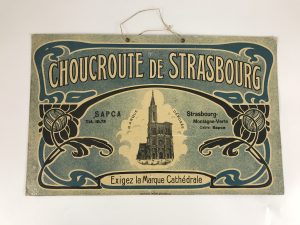 PANCARTE PUBLICITAIRE en carton fort : Choucroute de Strasbourg, Exigez la marque Cathédrale. Plaque de 23x35 cm.