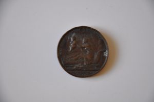 [DUC DE BORDEAUX] - MÉDAILLE représentant la naissance du Duc de Bordeaux ; la Duchesse de Berry assise, présente son enfant à bout de bras. Mention : « DIEU NOUS L'A DONNÉ NOS CŒURS ET NOS BRAS SONT A LUI » ; au verso « VINGT SEPT.1820 »....