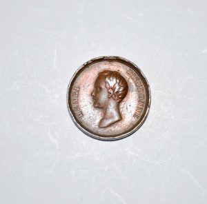 [COMTE DE CHAMBORD] MÉDAILLE à l'effigie du Comte de Chambord jeune. À l'avers, profil gauche « HENRI DIEUDONNÉ » ; au revers, ancre surmontée d'un scapulaire « DIEU ET LE ROI ». Diamètre 22 mm.