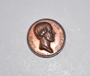 [COMTE DE CHAMBORD] MÉDAILLE à l'effigie du Comte de Chambord. A l'avers, portrait droit du Prince, âgé d'une trentaine d'années « HENRI DE FRANCE » ; au revers, une couronne de fleurs. Diamètre 20 mm.
