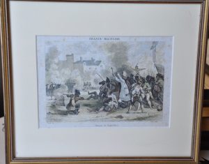 « ATTAQUE DE GRANVILLE ». (Rare représentation de l'Évêque des Vendéens, le faux évêque d'Agra) par Martinet del. Maison sculpt. Tirée de la France Militaire. Gravure en couleurs encadrée 222x264 mm. Rousseurs.