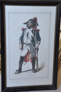 « MAYENÇAIS » par O. Penguilly & Préd'homme. Belle gravure en couleurs encadrée 265x170 mm.