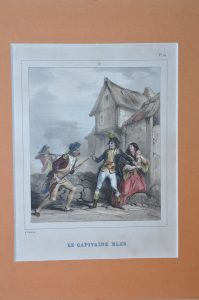 [DEVERIA] « LE CAPITAINE BLEU ». Gravure en couleurs. A. Devéria. Belle gravure non encadrée 265x195 mm.