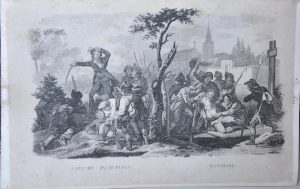 « LAROCHE JAQUELEIN / BONCHAMP ». Gravure non signée, non encadrée 245x155 mm. Légères rousseurs en marge.