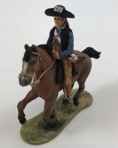 UN MOUTON NOIR, CAVALIER DE CHARETTE. Figurine de plomb, fabriquée par l'atelier VANOT et peinte par Louise LEMOINE, artiste de Rennes.